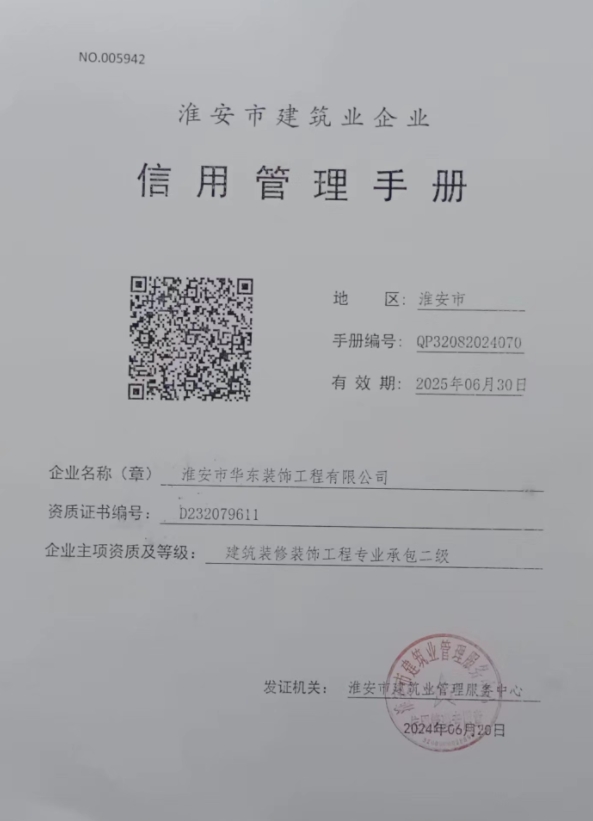 淮安市華東裝飾工程有限公司成立于2005年1月,企業(yè)性質為民營股份制企業(yè),是一家管理體制,質量保證體系嚴密的專業(yè)裝飾公司,是淮安裝飾業(yè)界優(yōu)秀企業(yè)之一。企業(yè)注冊資金1010萬元,擁有建筑裝飾裝修專業(yè)承包二級資質;電子與智能化工程專業(yè)承包二級資質;了解更多>>